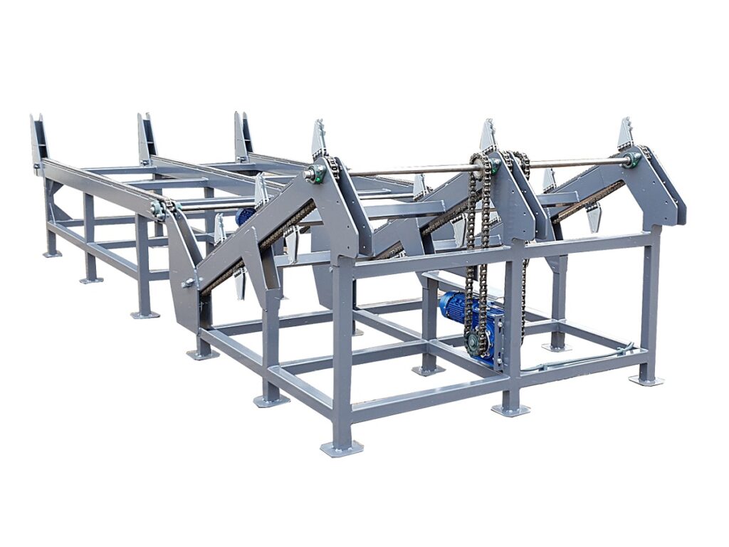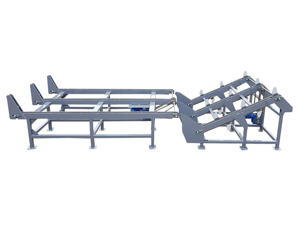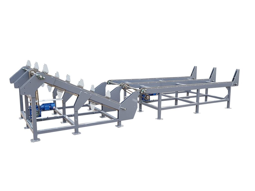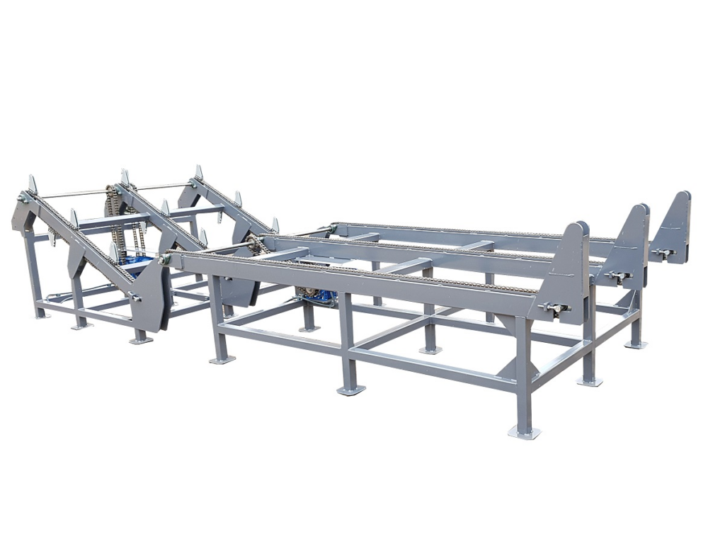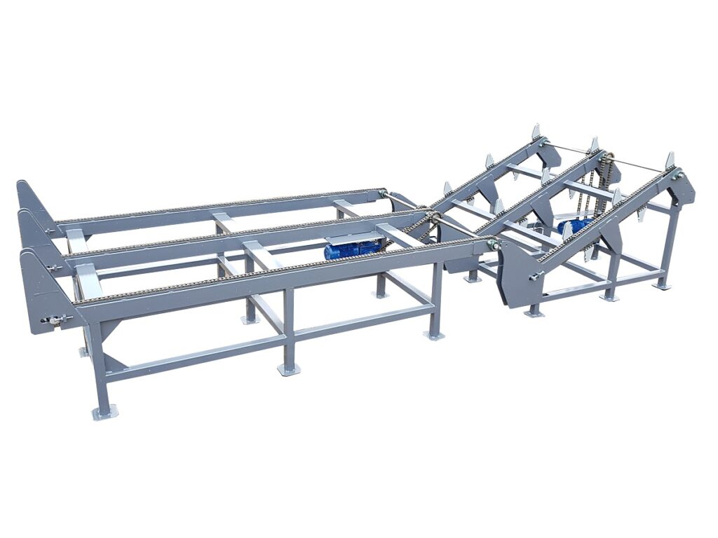 Podajnik można zaadoptować do każdego modelu maszyny do której wymagane jest podawanie drewna okrągłego z rozdzieleniem na pojedyncze kłody.